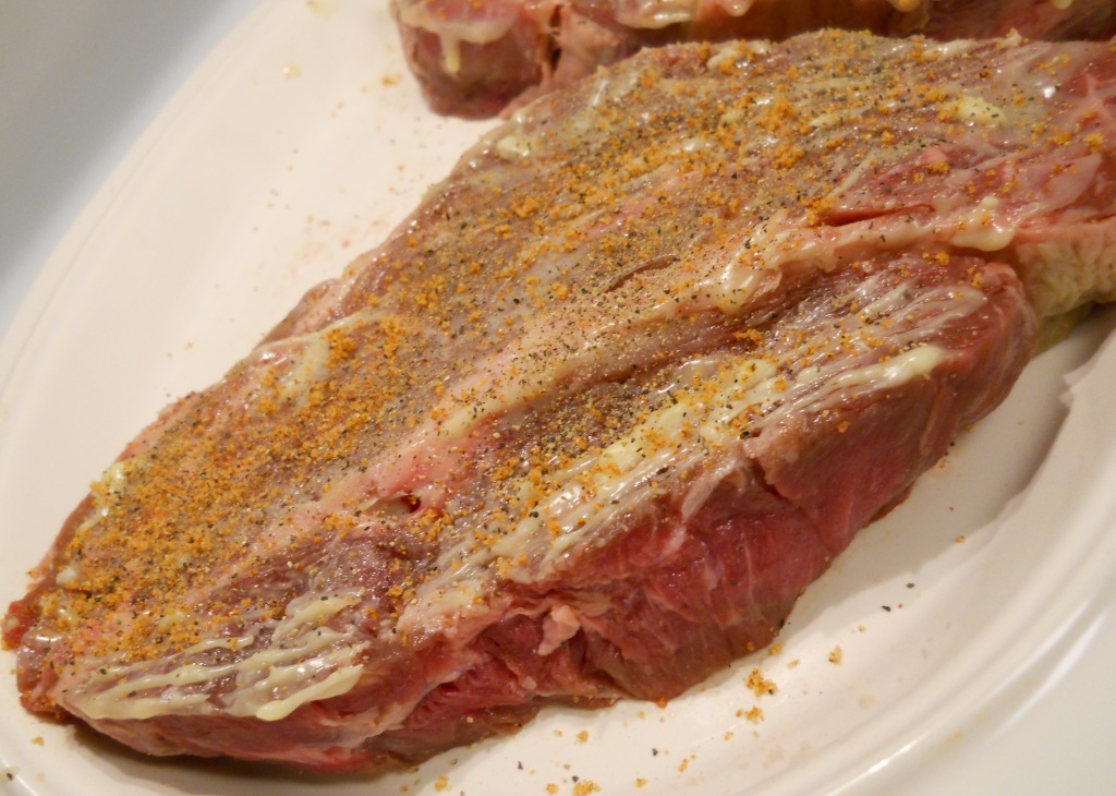 Note: I purchased 6 Chuck Eyes, all were very flavorful, only one was on the ‘tough’ side. I knew it was going to be tougher when I removed it from the freezer. It did not have the ‘nice marbling’ that I normally look for. So I blame myself for not being careful when I purchased it. I was so EXCITED when I finally found the Chuck Eyes, I just grabbed the first six and ran to the cash register… LITERALLY! :)