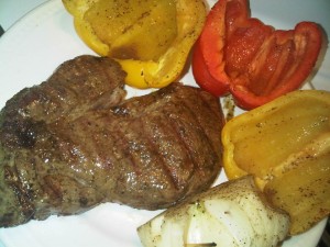 Note: I prefer my steaks ‘seared’ on the outside and rare inside.