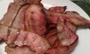 I had eggs and bacon most mornings, for lunch and dinner I was either eating bacon, cooking with bacon or cooking with rendered bacon fat. Here’s a post I did on cooking with Bacon and a description of obtaining ‘rendered bacon fat’, “Broiled Bacon & Chicken“.